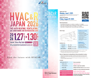 THE 44TH HEATING, VENTILATING, AIR-CONDITIONING AND REFRIGERATING EXPO (HVAC&R JAPAN 2026) will be held from January 27 (Tue) to 30 (Fri), 2026.